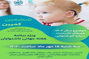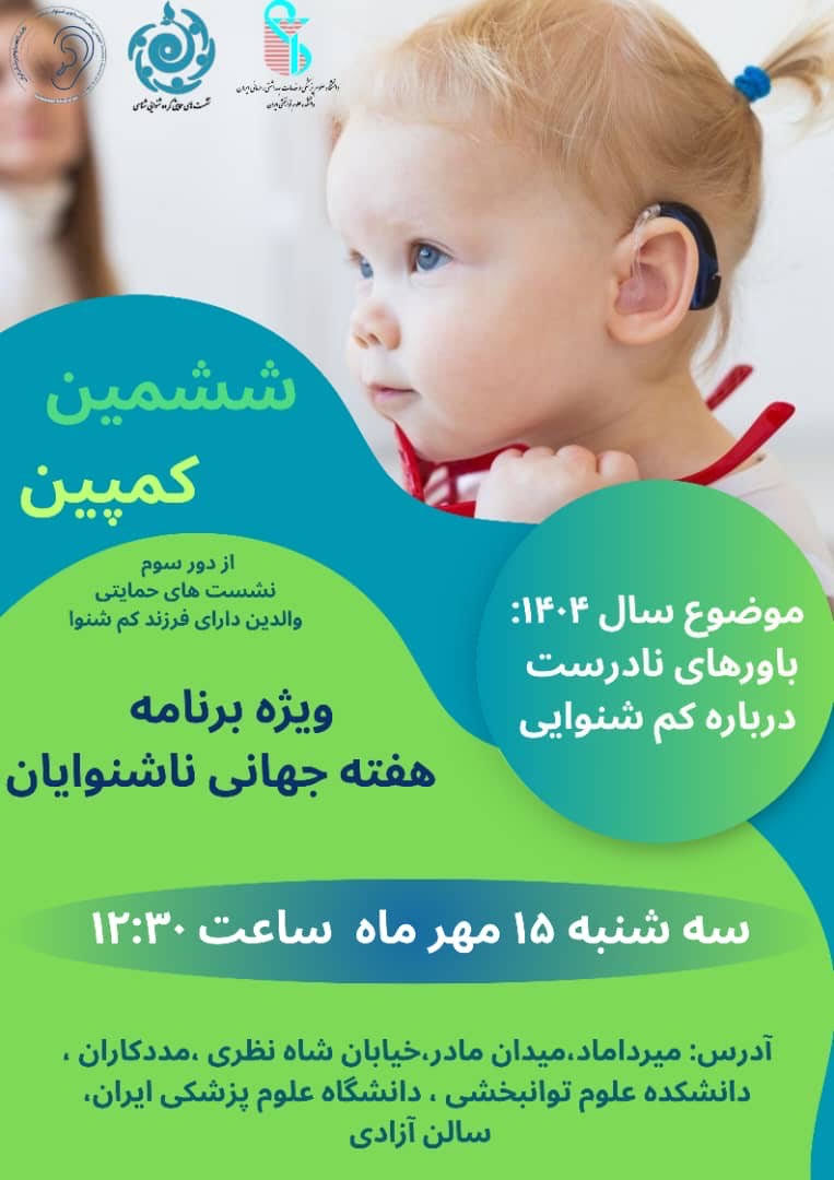 ششمین کمپین دور سوم نشست گروهی-حمایتی برای والدین دارای فرزند کم شنوا به مناسبت هفته جهانی ناشنوایان در دانشکده علوم توانبخشی برگزار میشود.